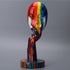 Amber Denkt is een set van kleurrijke abstracte masker standbeelden. Het magnifieke ontwerp combineert een zorgelijke uitdrukking (v1) met een bedenkelijke uitdrukking (v2). Beide zijn kleurrijk geschilderd, wat een uniek contrast geeft in de totaaluitdrukking.