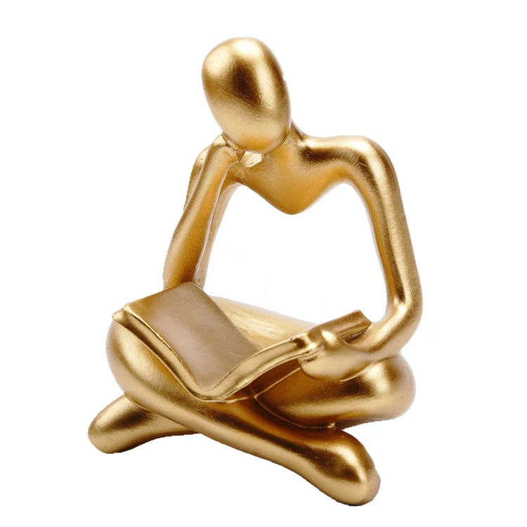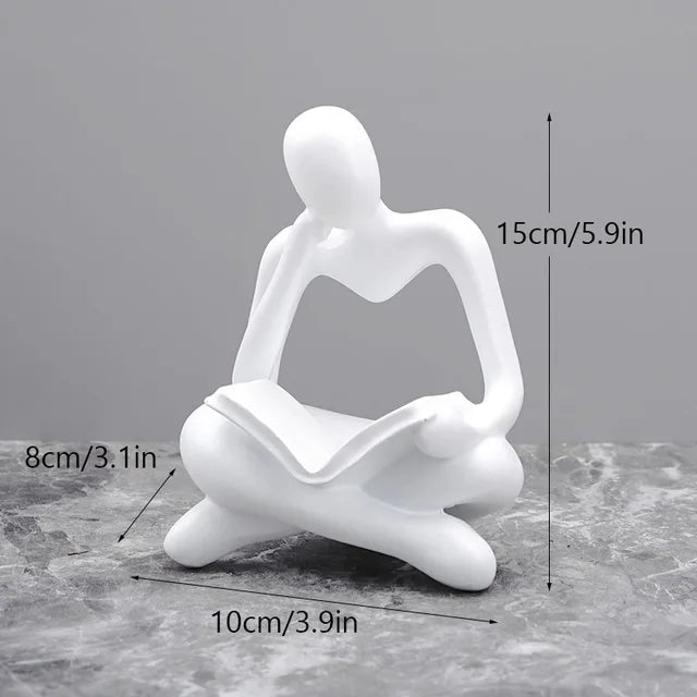 Dit charmante beeldje, vervaardigd uit hoogwaardig hars, stelt een figuur voor die in kleermakerszit verdiept is in een boek. Het straalt rust en contemplatie uit, perfect voor liefhebbers van lezen en stilte.