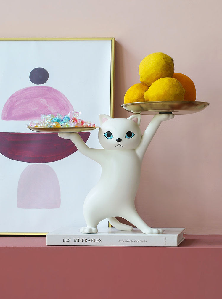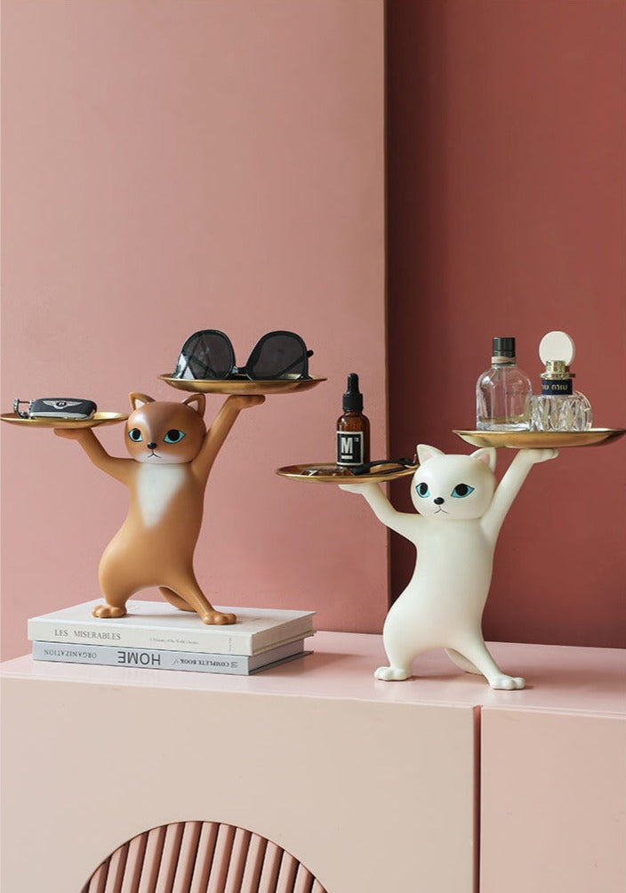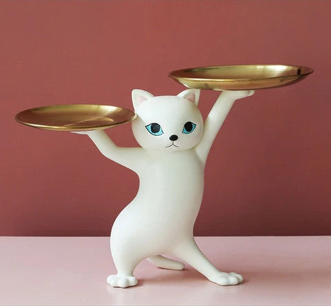 Kitty de Kat staat altijd paraat. In de meest sierlijke pose houdt die uw spullen hoog en droog. Zij het uw accessoires, parfums, fruit of snoep.