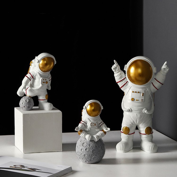 Grappige set Astronauten Miniaturen. Deze beeldjes zijn relatief klein (zie afmetingen hieronder). Daarom zijn ze alleen per set van 3 te verkrijgen.